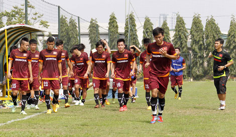 | Các cầu thủ ĐT Olympic Việt Nam phải chạy đến... bở hơi tai. Ảnh: H.M. |