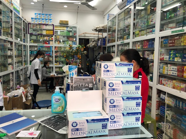 Ghé một tiệm nhỏ, nhận viên bán hàng cho biết, khẩu trang giờ đang rất khan hiếm, khách không mua nhanh cũng hết. Loại 3 lớp của Việt Nam có giá 100k/hộp 50 chiếc (loại này trước kia giá khoảng 50.000-60.000đ/hộp), loại hộp 20 chiếc có gói riêng từng chiếc thì có giá 80.000đ.