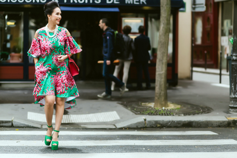 Diễm My mặc các thiết kế hoa cúc dạo phố Paris