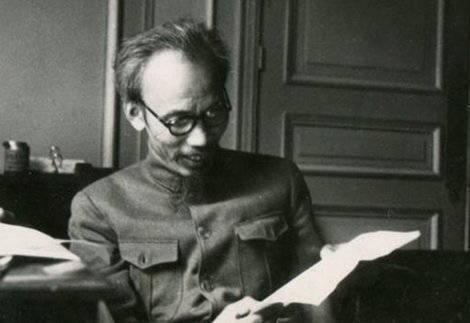 | Chủ tịch Hồ Chí Minh đọc thư ở Paris (7-1946). |