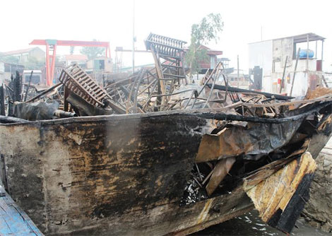 | Tàu du lịch Biển Ngọc được đưa về khu sửa chữa tàu thuyền Cái Lân vào sáng ngày 4/2/2015. |