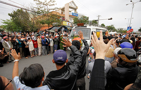 | Hàng nghìn người đứng 2 bên đường nơi xe tang đi qua, tiễn biệt ông Nguyễn Bá Thanh. |
