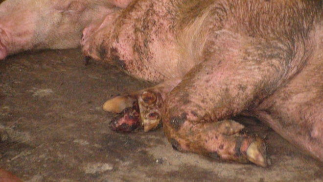 | Cận cảnh một con heo bị lở mồm, long móng. |