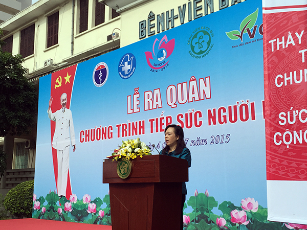 Phát biểu tại buổi lễ, Bộ trưởng Bộ Y tế Nguyễn Thị Kim Tiến nhấn mạnh: Kế hoạch “Đổi mới phong cách, thái độ phục vụ của cán bộ y tế hướng tới sự hài lòng của người bệnh” của Bộ Y tế là giải pháp đột phá để đổi mới căn bản, toàn diện cách nghĩ, cách làm của từng cán bộ y tế, từng cơ sở y tế khi phục vụ người bệnh, để hướng tới sự hài lòng của người dân. Một trong những trọng tâm của Kế hoạch là Triển khai đề án“Tiếp sức người bệnh” do các Thầy thuốc trẻ và sinh viên tình nguyện hướng dẫn, giúp đỡ người bệnh trong các BV.