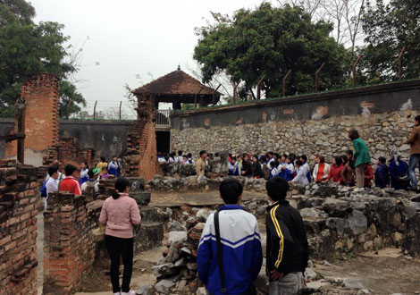 | Du khách tham quan di tích nhà tù Sơn La. |