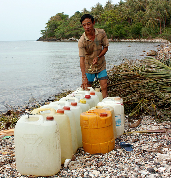 | Người dân xã đảo Nam Du vất vả vì thiếu nước ngọt. |
