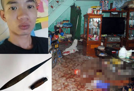 | Đối tượng Hùng, hung khí và hiện trường vụ án. |