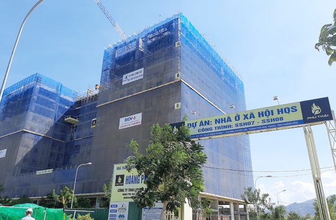 | Dự án nhà ở xã hội HQS còn đang xây dựng dang dở nhưng chủ đầu tư đã huy động vốn dưới hình thức đặt cọc mua nhà nên đã bị Sở Xây dựng Khánh Hòa "tuýt còi". Ảnh : Hữu Toàn |