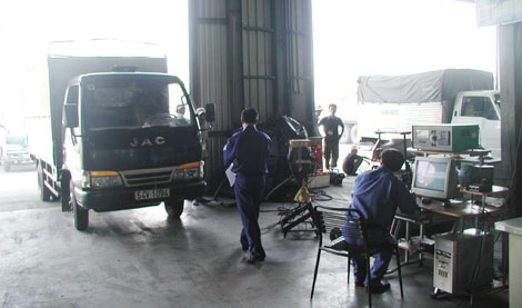| Kiểm định xe tại một trung tâm đăng kiểm xe cơ giới. |