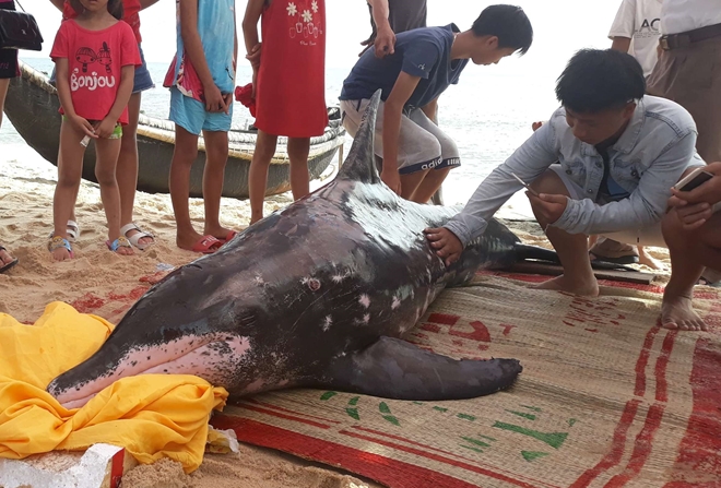 Cá heo đuối sức 3 lần dạt vào bờ biển ở Huế