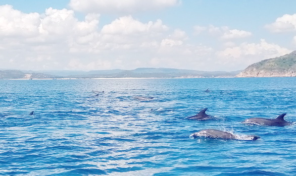 Đàn cá heo chen nhau chao lượn ven bờ biển Phú Yên