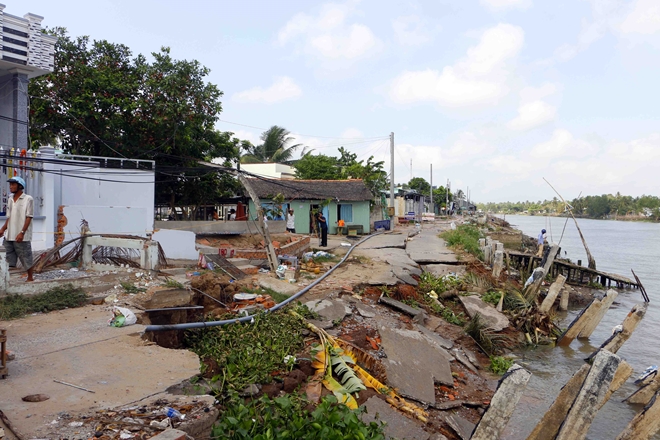 | Sạt lở đất bờ sông ở đồng bằng sông Cửu Long ngày càng phức tạp. |