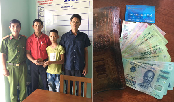 Trước đó, khoảng 15h30 ngày 23/5, em Võ Văn Trí Tài (SN 2008, trú thôn Đông Bình, xã Tam Giang, học sinh lớp 6/3 trường THCS Phan Châu Trinh, xã Tam Giang) đi sang nhà hàng xóm chơi thì phát hiện một ví da, trong ví da có số tiền hơn 4 triệu đồng và một ATM mang tên Đào Việt Dương (xã Tam Xuân 2, huyện Núi Thành) cùng nhiều giấy tờ.