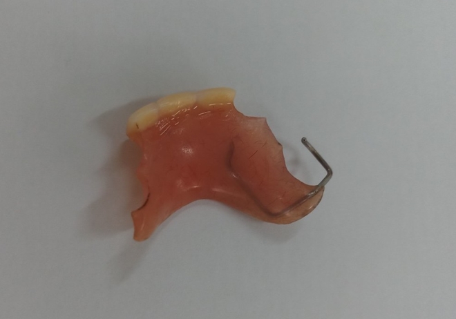 | Hàm răng giả được bác sĩ lấy ra từ thực quản. |