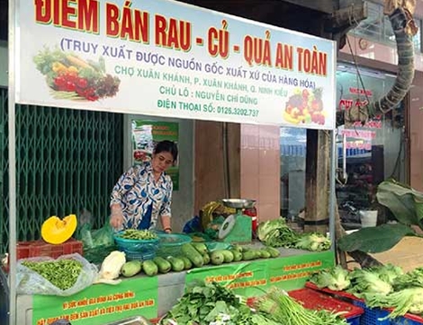 | Điểm bán nông sản sạch tại chợ Xuân Khánh. |