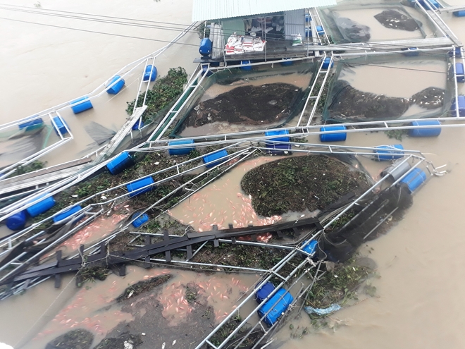 Sáng ngày 9-12, trên địa bàn tỉnh Quảng Nam mưa lớn bất ngờ, nước lũ trên sông Bàn Thạch đột ngột dâng cao khiến cho 40 lồng bè nuôi cá diêu hồng của anh Nguyễn Xuân Ngọc (trú phường Trường Xuân, TP.Tam Kỳ) bị trôi sông. Ước tính thiệt hại 3 tỷ đồng.