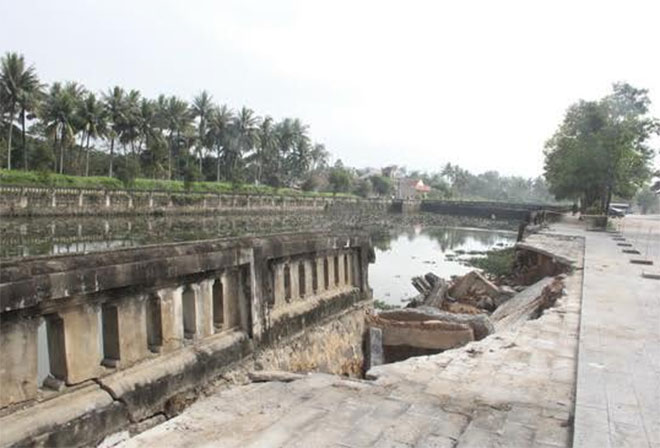 | Một điểm kè Di tích Quốc gia Thành cổ Quảng Trị bị sạt lở, hư hỏng. |
