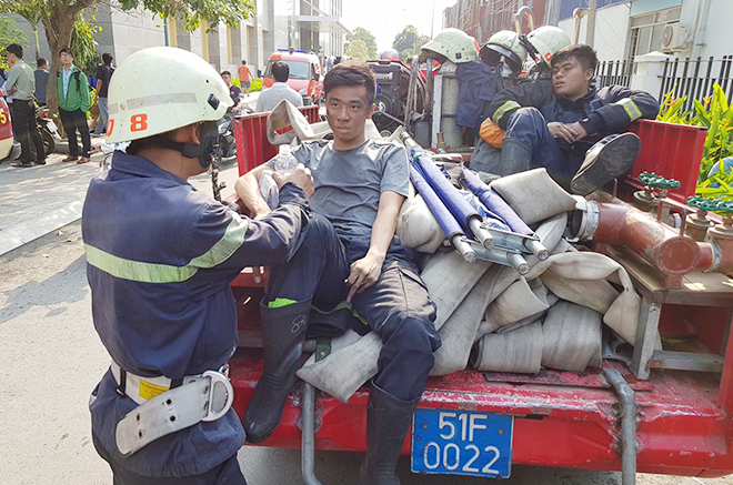 Các đơn vị khác thuộc Cảnh sát PCCC TP Hồ Chí Minh có tham gia chữa cháy vụ sáng 23-3 chỉ được nghỉ ngơi vài tiếng đồng hồ lại tiếp tục công tác huấn luyện và túc trực, sẵn sàng chiến đấu khi có lệnh.