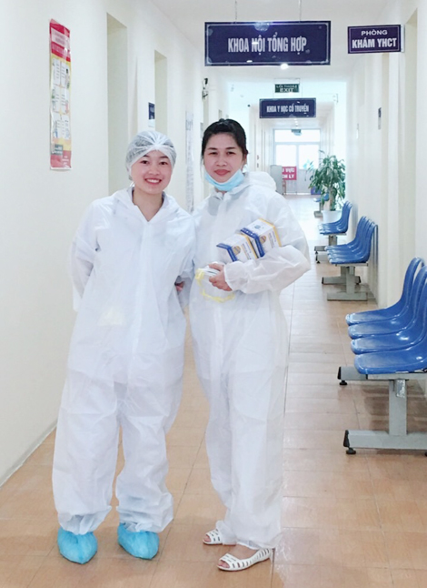 Sau khi bố trí cho tôi ổn định trong khu vực cách ly tại tầng 4, chị căn dặn: “Ở đây thoáng mát lắm, nên em và mọi người cứ yên tâm theo dõi sức khỏe. Tuy nhiên, nhớ không được rời khỏi phòng, đi lại quanh khu cách ly đâu đấy!”. 20 phút sau, chị cùng đồng nghiệp gửi chúng tôi suất ăn tối (gồm mỳ tôm và sữa/người) rồi tranh thủ thu thập thêm thông tin có liên quan đến từng người cách ly trong nhóm chúng tôi.
