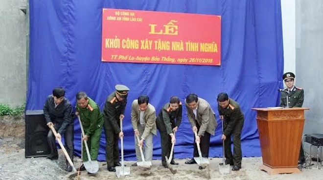 Công an tỉnh Lào Cai vừa tổ chức lễ khởi công xây nhà tình nghĩa cho gia đình đồng chí Thượng úy Bùi Văn Huyện, cán bộ Công an huyện Bảo Thắng, trú tại thị trấn Phố Lu, huyện Bảo Thắng.