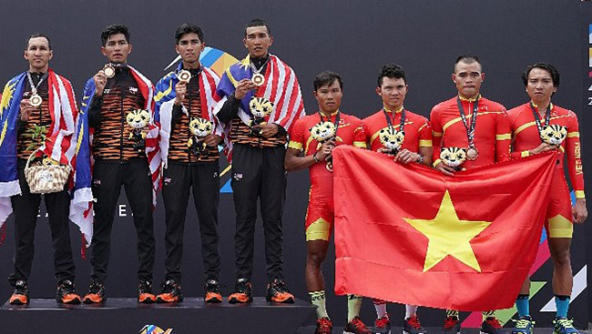 Đi bộ như chạy rồi 2 tấm huy chương vàng cho cùng một nội dung thi, chủ nhà Malaysia vừa ghi thêm vào bảng vàng thành tích “tai tiếng” của mình tấm huy chương vàng nội dung 50km đồng đội nam tính giờ môn đua xe đạp với cách không thể tin được đó là đi đường tắt về đích.