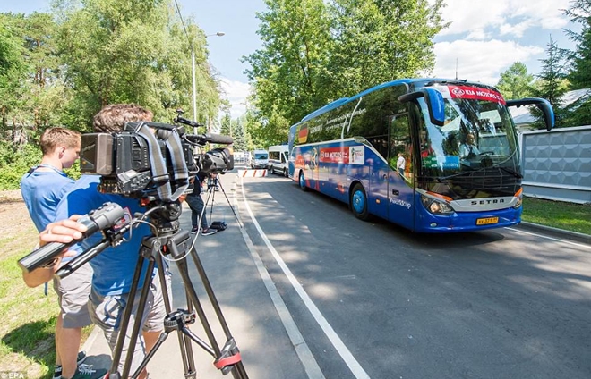 | Chiếc xe bus chở nhà cựu vô địch ra sân bay Vnukov |