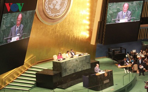 | Chủ tịch Quốc hội NGuyễn Sinh Hùng phát biểu tại Hội nghị thế giới các Chủ tịch Quốc hội lần thứ 4. Ảnh: VOV. |