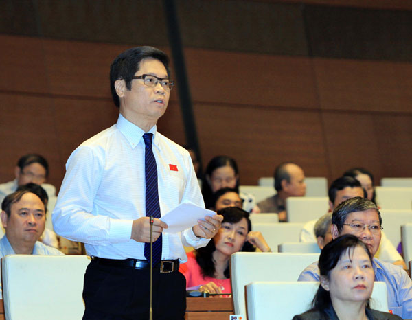 | Đại biểu Vũ Tiến Lộc chất vấn thành viên Chính phủ. Ảnh: TTXVN. |
