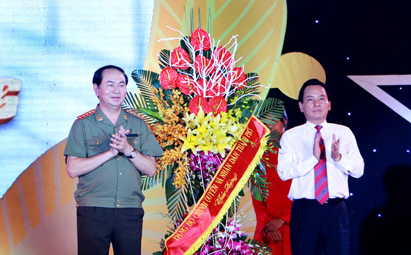 | Bộ trưởng Trần Đại Quang đón nhận lẵng hoa chúc mừng của Đảng bộ, chính quyền và nhân dân TP Hà Nội tại Cầu truyền hình. |