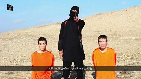 | Hai con tin người Nhật Bản xuất hiện trong đoạn video clip của IS. (Ảnh: CNN) |