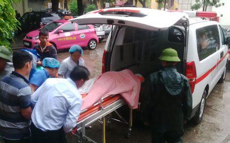 | Thi thể sản phụ Nguyễn Thị Thu Hà được đưa lên xe để chuyển về nhà vào sáng 12/10. |