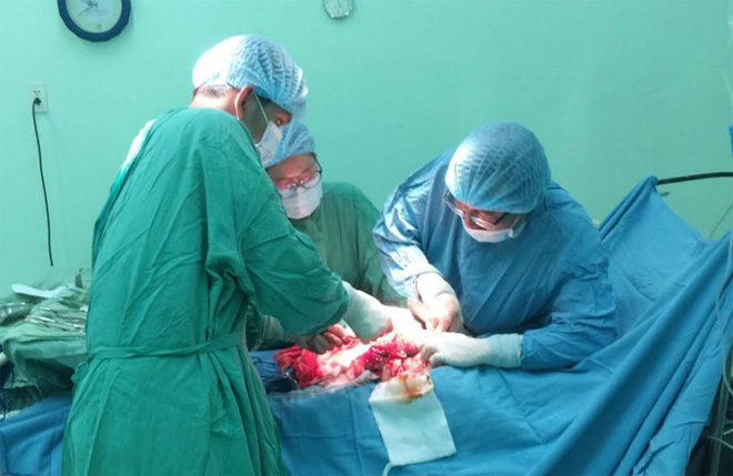 Sau 2 giờ, ê-kip phẫu thuật với sự tham gia của Ths-BS Trịnh Hoài Ngọc, BS Nguyễn Quốc Oai, BS Lê Văn Việt, BS Huỳnh Công Tâm, đã tiến hành đã cắt khối u xơ tử cung cho bệnh nhân an toàn. Hiện, bệnh nhân sinh hiệu ổn, vết mổ tốt và đang được theo dõi tại Khoa Phụ - BVPS Cần Thơ.